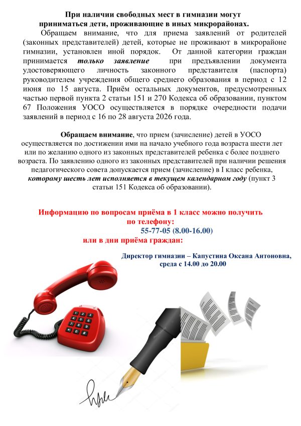 Информацию по вопросам приёма в 1 класс можно получить по телефону «горячей линии»: